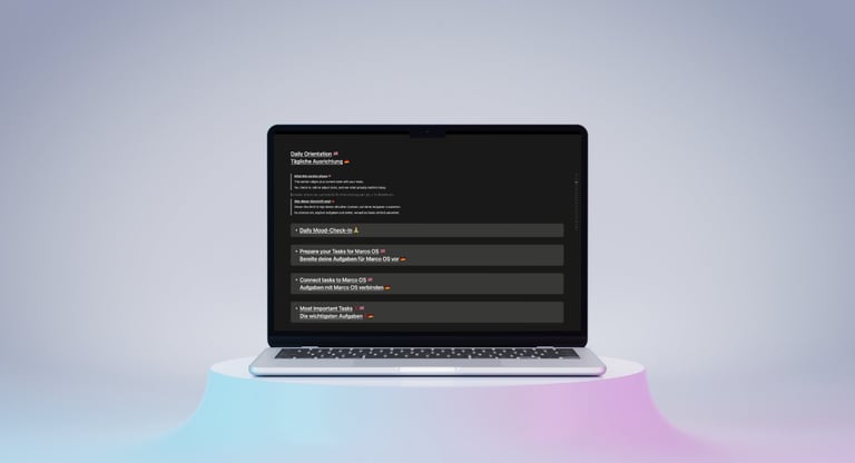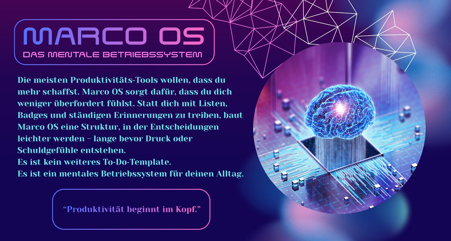 Marco OS ist ein digitales, auf Notion basierendes mentales Betriebssystem zur Strukturierung von Aufgaben,