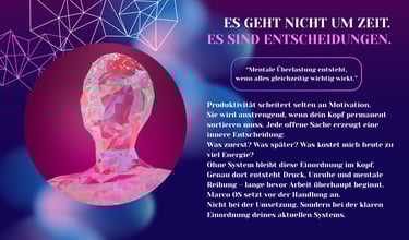 So hilft dir Marco OS, Aufgaben sinnvoll zu priorisieren, mentale Überforderung zu vermeiden und Entscheidungen mit Klarheit statt Druck zu treffen.