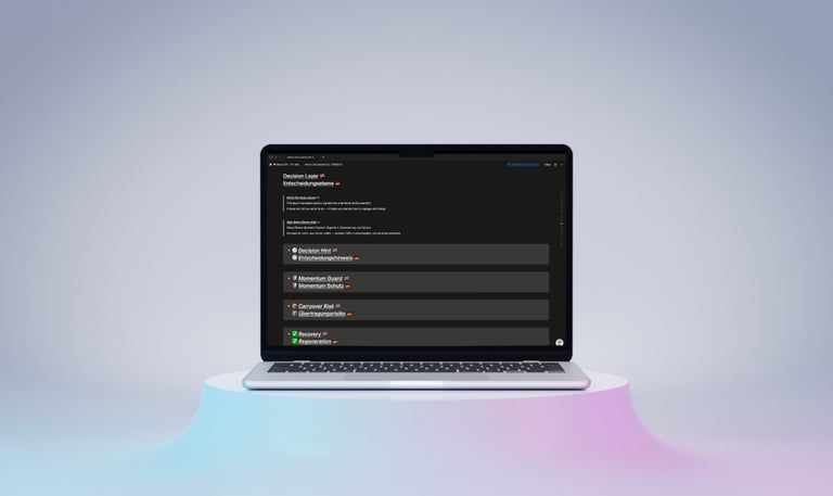Die Weekly System Review zeigt, ob dein Rhythmus stimmt, ob Belastung und Erholung im Gleichgewicht sind und ob Momentum nachhaltig entsteht.